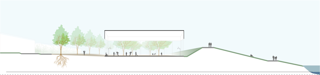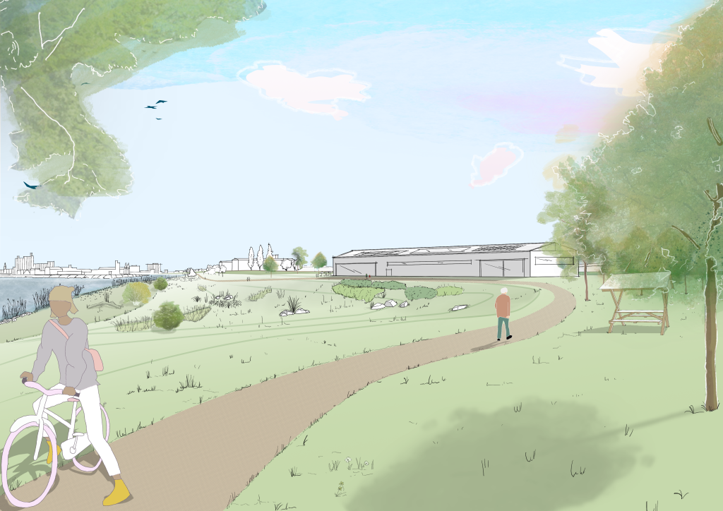 Zusätzlich zur Schaffung von Grünflächen wird der Uferpark durch die Umnutzung alter Industriehallen bereichert. Diese Hallen werden in multifunktionale Einrichtungen umgewandelt, die eine Mischung aus kulturellen, sozialen und wirtschaftlichen Nutzungen bieten. Geplant sind Gemeinschaftszentren, Ateliers, Cafés und kleine Läden, die das kulturelle Leben bereichern und neue wirtschaftliche Impulse setzen. Diese Umnutzungen unterstützen nicht nur die städtebauliche Aufwertung des Gebietes, sondern tragen auch zur sozialen Integration und Vielfalt bei.