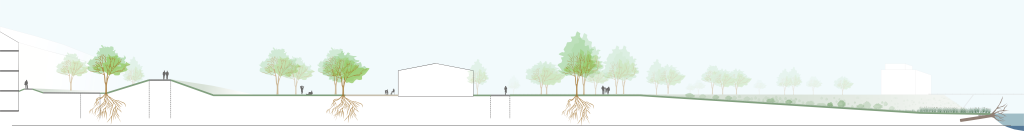 Die dritte Hauptmaßnahme des Projekts ist die Entwicklung eines Uferparks entlang der Weser, der als grünes Bindeglied zwischen den Stadtteilen Woltmershausen, Altem und Vorderem Woltmershausen fungieren soll. Der Uferpark soll bisher ungenutzte und versiegelte Flächen am Fluss in hochwertige, öffentlich zugängliche Grünflächen umwandeln und den Bewohner:innen vielfältige Erholungs- und Freizeitmöglichkeiten bieten. Die Gestaltung des Uferparks zielt darauf ab, die Grünraumqualität erheblich zu verbessern, indem artenreiche Wiesen, Gehölze und Feuchtbiotope geschaffen werden, die die Biodiversität fördern und das Stadtklima positiv beeinflussen.