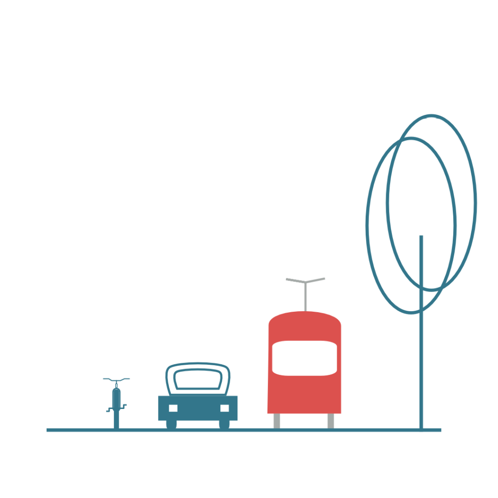 Integration einer neuen Tramlinie in den Straßenraum, um die Dominanz des motorisierten Verkehrs zu reduzieren und den öffentlichen Nahverkehr zu stärken.